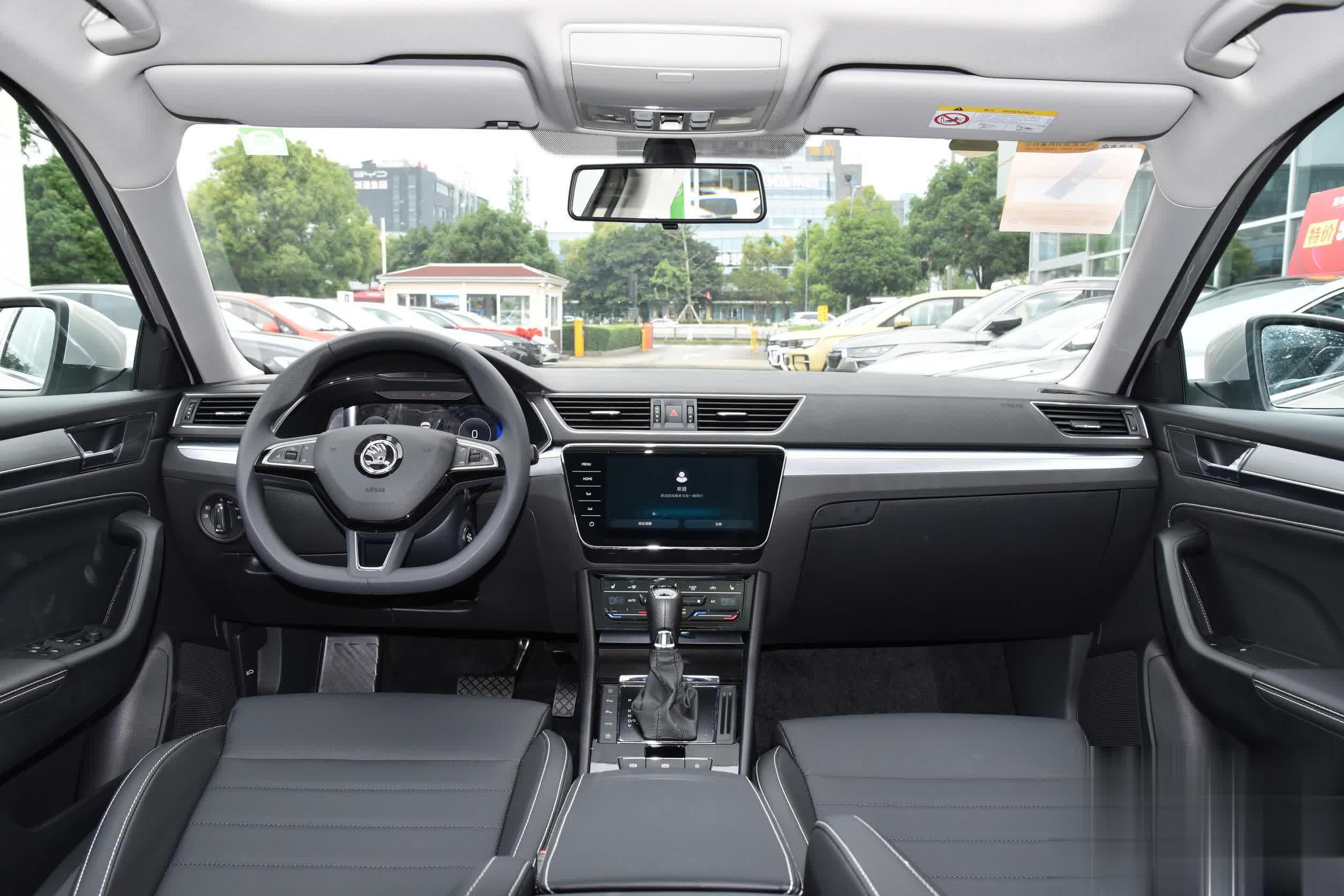 斯柯达速派的中控台布局规规整整,营造的氛围有点沉闷,很难让年轻人感兴趣,并且多功能方向盘是塑料的,新车气味有点大,建议多开窗通风处理,而10.25英寸全液晶仪表和9.2英寸中控屏提升了些档次,支持语音识别控制、车联网等,但车机谈不上多么智能好用。